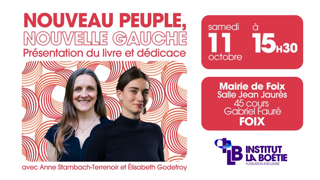 Le jeudi 9 octobre, retrouvez Magali Della Sudda et Sébastien Rome à Nice pour une rencontre et dédicace autour du nouveau livre collectif de l’Institut La Boétie, Nouveau peuple, nouvelle gauche.
