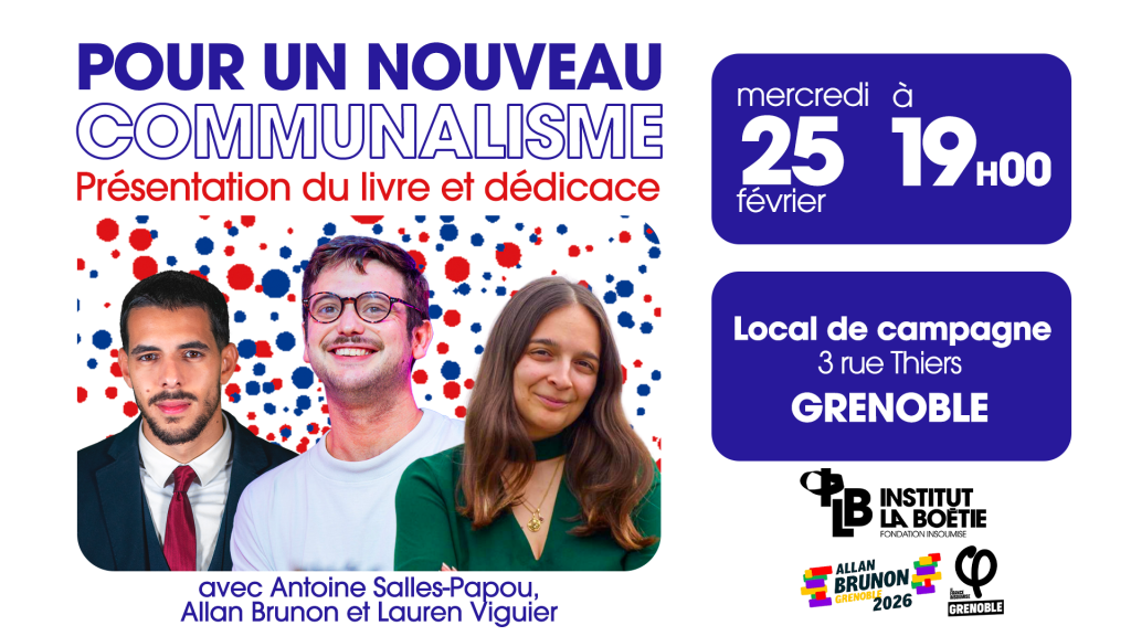 Jeudi 19 février à Amiens, retrouvez Antoine Salles-Papou, Samy Olivier et Zahia Hamdane pour une rencontre autour du nouveau livre collectif de l’Institut La Boétie, Pour un nouveau communalisme.